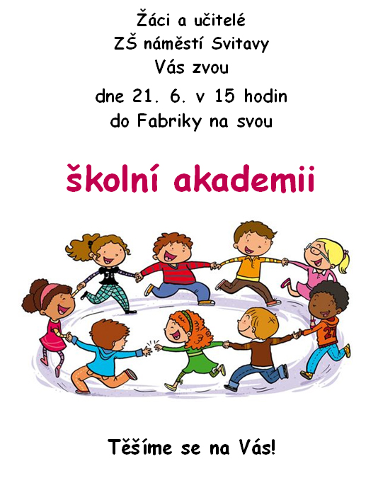 Dne 21. 6. 2018 v 15:00 se koná tradiční školní Akademie v multifunkčním centru Fabrika.
