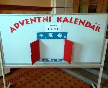 Školní parlament naší školy přišel s velmi zajímavým návrhem. Jedná se o školní adventní kalendář. V posledním týdnu před Vánočními prázdninami, počínaje čtvrtkem 13. 12., uvidí všichni příchozí ve vestibulu na nástěnce otevřené okénko s tématem dne. Každé ráno bude téma dne pro děti překvapením.