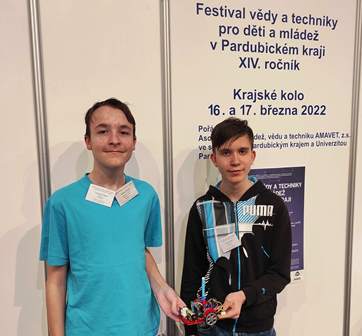 Ve čtvrtek 17. března skončilo krajské kolo prestižní soutěže Faestival vědy a techniky pro mládež Pardubického kraje. Náš projekt RÝSOVACÍ ROBOT, který zpracovali naši žáci Tadeáš Zeman a Ondřej Motl patří mezi vítězné práce. Chlapci obdrželi zvláštní cenu od společnosti Bühler CZ s.r.o. - Žamberk. Hlavně se však oba chlapci za odměnu zúčastní krátkodobé studijní stáže ve Francii.