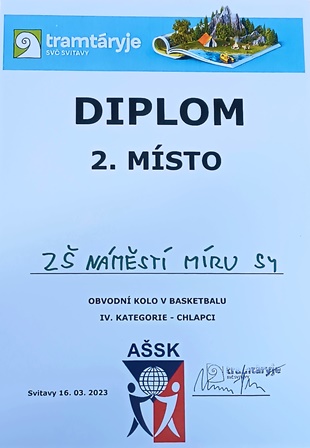 Dne 15. 3. se uskutečnilo obvodní kolo v basketbalu děvčat IV. kategorie, kde náš tým bojoval o co nejlepší umístění. Děvčatům se podařilo vybojovat 3. místo, ačkoliv jsme těsně minuly 2. místo o jeden bod (v zápase o 2. místo jsme prohráli 19:20).