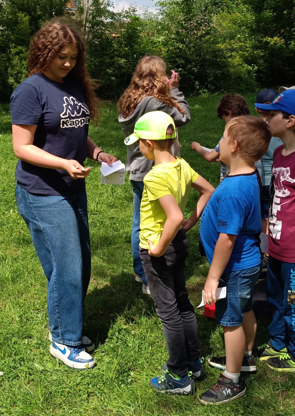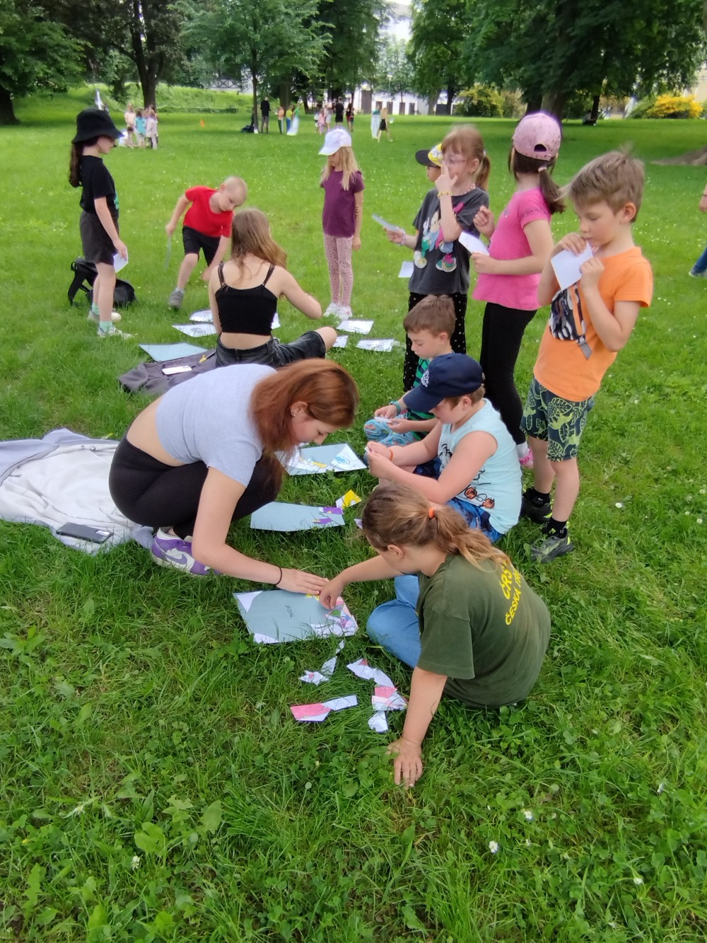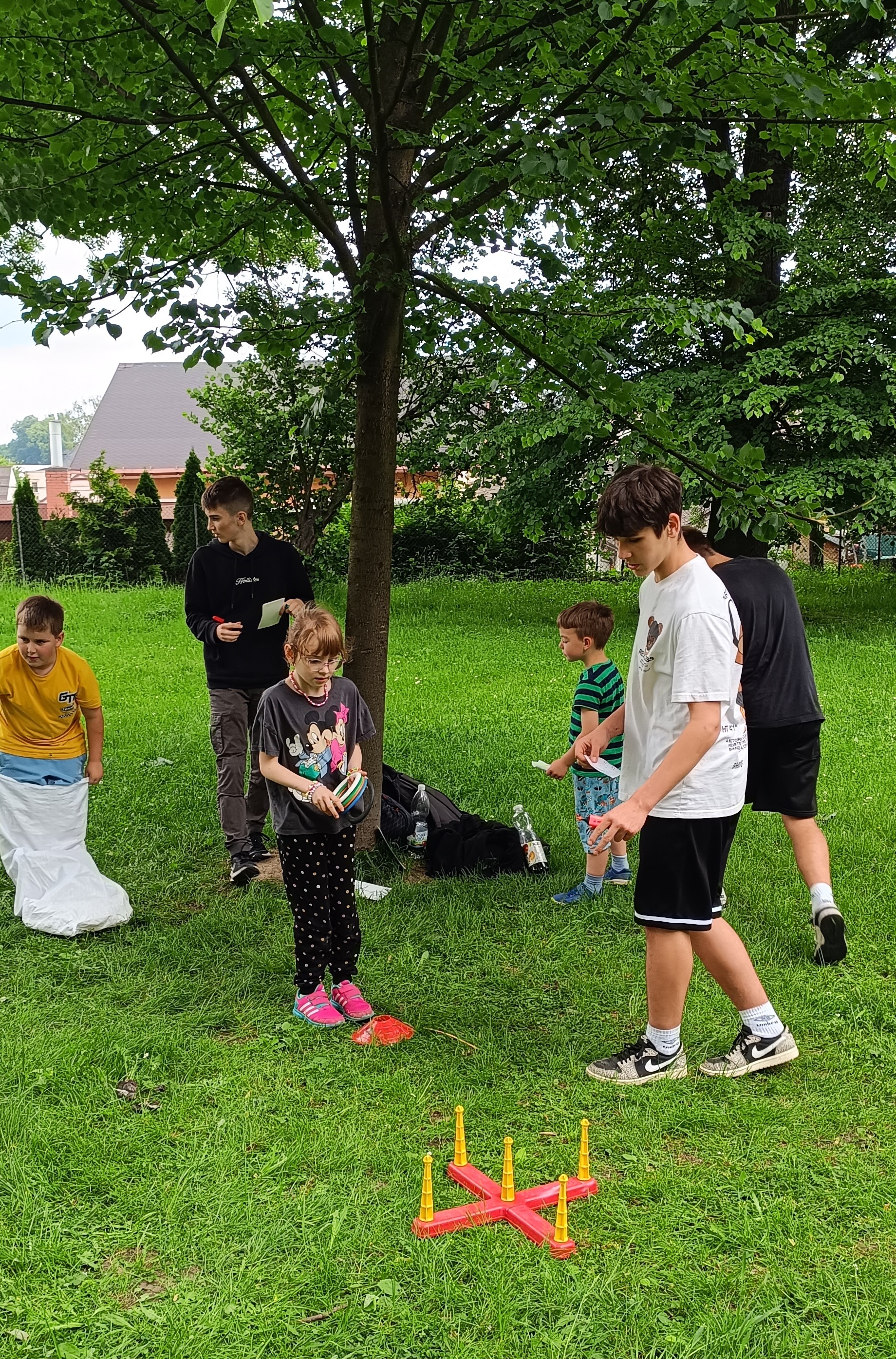 V úterý 28. 5. připravili žáci 9. B pro naši školní družinu zábavné odpoledne. Po obědě se všechny děti vydaly do parku za jídelnou, aby zde oslavily Mezinárodní den dětí. Bylo zde nachystáno třináct soutěžních disciplín. Děti si mohly vyzkoušet třeba skákání v pytlích, hod na cíl, puzzle, pohádkové pexeso a spoustu dalšího. Všichni se nadšeně pustili do plnění úkolů a deváťáci ochotně pomáhali a v případě potřeby poradili. Na závěr byli všichni zúčastnění zaslouženě odměněni sladkou maličkostí. I když počasí občas vypadalo nejistě, nakonec nás nezradilo a všichni si užili odpoledne plné soutěží, zábavy a radosti. (zpracovala P. Lacková)