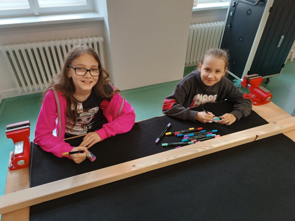 Do učebny pracovních činností nám věnovala ochrannou textilii na nové pracovní stoly, která pomáhá chránit jejich povrch při řezbářské a jiné manuální činnosti.